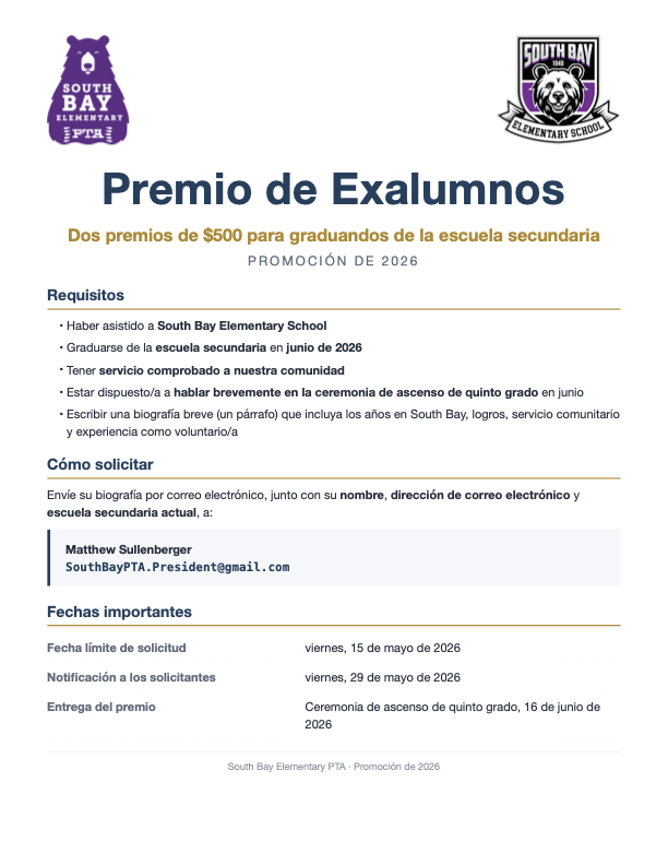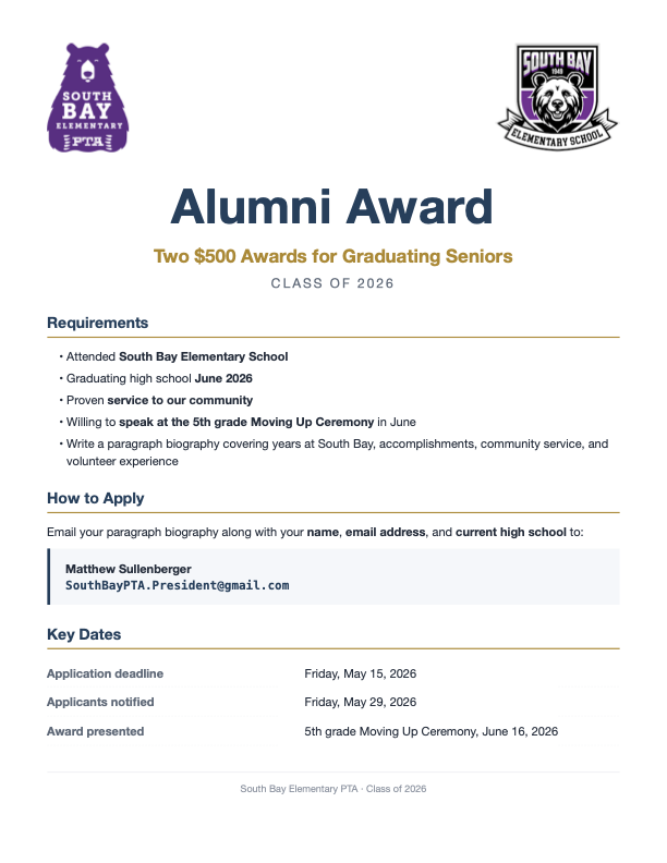South Bay PTA Welcomes You!
